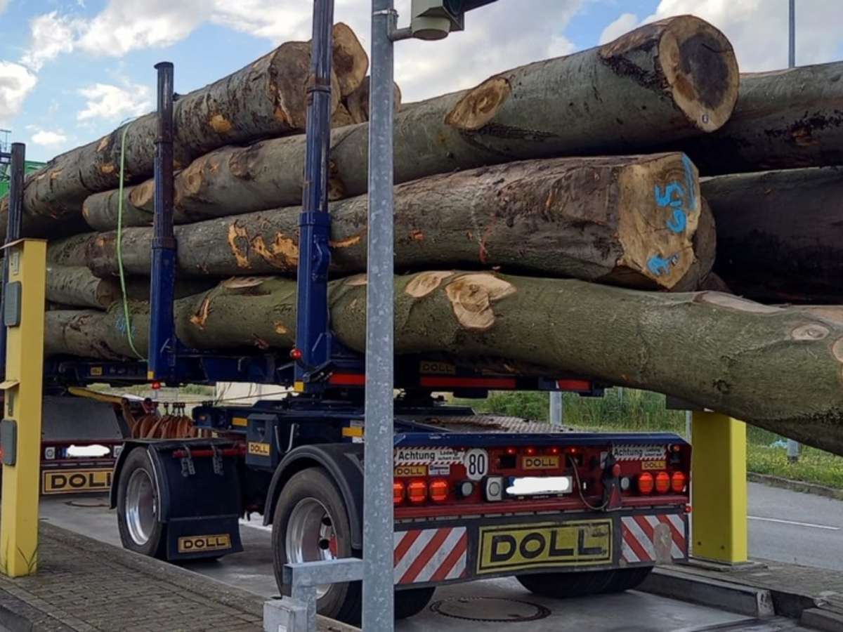21.06.2024 - 12:55:27 | presseportal.deDie erste Waage, eine Brückenwaage, konnte gar nicht genutzt werden. Sie wiegt nur bis 50.000 Kilo. Die Baumstämme waren also noch deutlich schwerer. Eine mobile Radlastwaage von der Polizei wurde nachgeholt und zeigte ein Gesamtgewicht von 56.640 Kilo an. Erlaubt waren für den LKW - bereits mit Sondergenehmigung - aber nur 41.800 Kilogramm. Das macht eine Überladung von mehr als 35 Prozent.