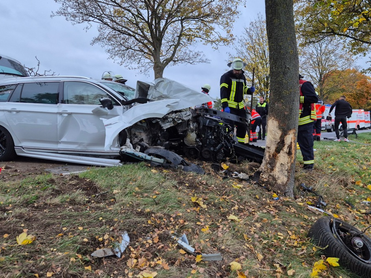 Südheide - Am Samstagnachmittag ereignete sich auf der L240 zwischen Beckedorf und Huxahl erneut ein schwerer Verkehrsunfall nach einem missglückten Überholmanöver. Nach ersten Erkenntnissen der Polizei setzte der mit 2 Erwachsenen und zwei Kinder besetzte VW Passat zum Überholen mehrere Fahrzeuge an. Ein sich weiter vorne befindliches Fahrzeug setzte kurze Zeit später ebenfalls zum Überholen an. Um einen Zusammenstoß zu vermeiden kam der Passat nach rechts von der Fahrbahn ab und stieß mit hoher Geschwindigkeit gegen einen Baum. Glücklicherweise wurde niemand im Fahrzeug eingeklemmt. Die um 17:07 Uhr alarmierte FF Beckedorf sicherte die Unfallstelle ab, stellte den Brandschutz sicher, schaltete das Fahrzeug stromlos und streute auslaufende Betriebsstoffe ab. Ein Erwachsener sowie die zwei Kinder wurden ins AKH nach Celle transportiert. Ebenfalls zum Einsatz alarmiert wurden 4 RTW, der Notarzt, der Organisatorische Leiter des Rettungsdienstes und die Polizei. Nach ca. einer Stunde war der Einsatz für die Feuerwehr beendet.