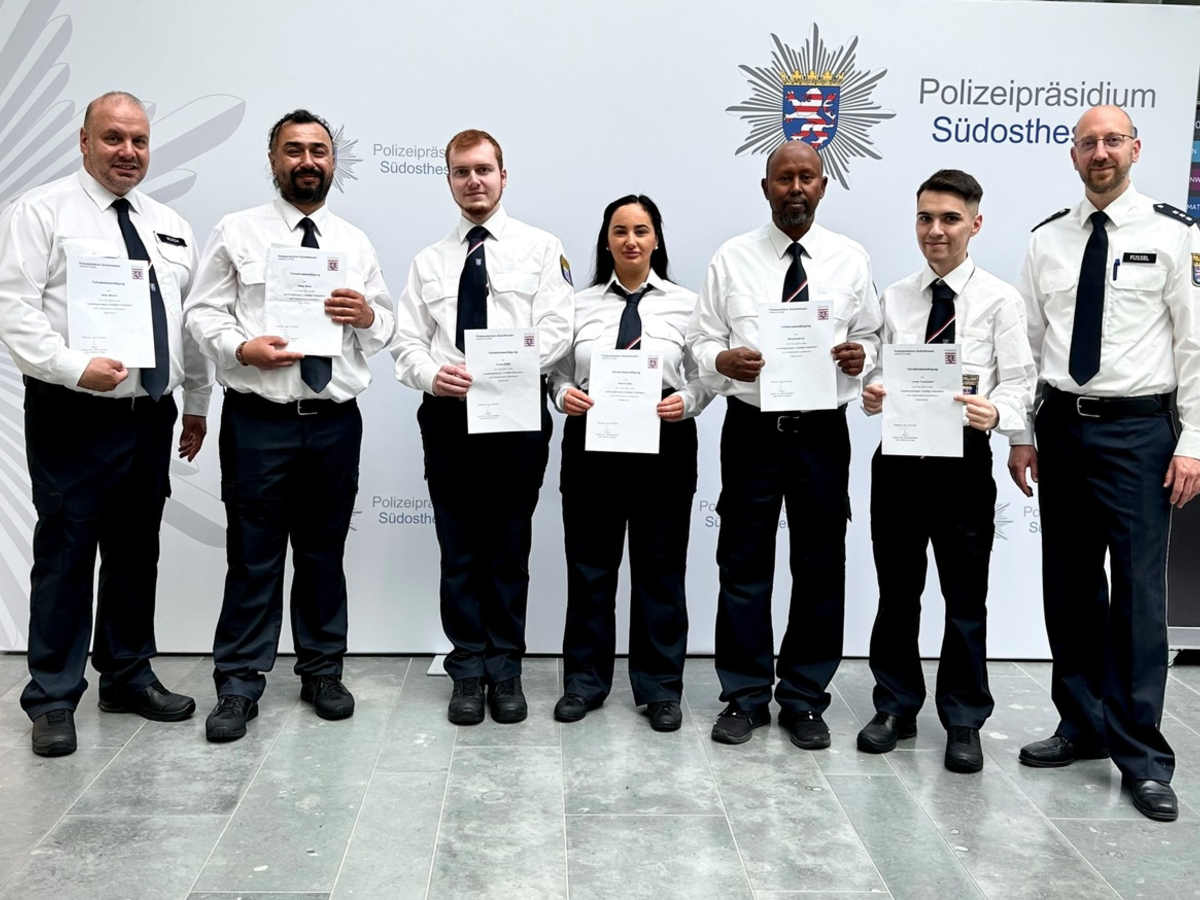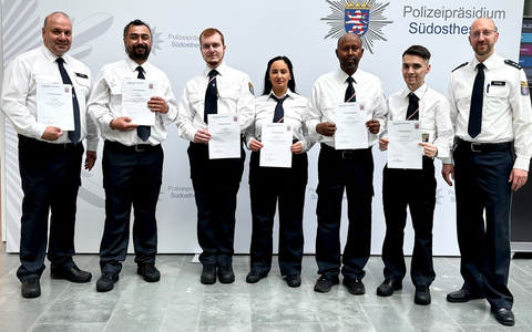 Während ihrer Ausbildungsdauer von 52 Stunden erlernten sie die rechtlichen Grundlagen für ein späteres Tätigwerden und erhielten spannende Einblicke in die Arbeit der Polizei. Einsatztraining, Rollenverständnis, Kommunikation und Verhaltenstraining sind weitere Ausbildungsinhalte. Als kompetente Ansprechpersonen auf Streife erfahren sie in Gesprächen mit Bürgerinnen und Bürgern aus erster Hand von möglichen Problemen. So können sie beratend und vermittelnd zur Seite stehen, was zu einem verbesserten Verständnis und Austausch zwischen Bürgern und Polizei beitragen kann. Ab sofort sind die sechs ehrenamtlich tätigen Personen in ihren jeweiligen Kommunen eingesetzt und unterstützen dort die Arbeit der Polizei- und Ordnungsbehörden. Wie wichtig ihre Arbeit ist, zeigte sich beispielsweise bei einer jüngst erfolgten Festnahme einer jungen mutmaßlichen Ladendiebin in Offenbach, die durch den Freiwilligen Polizeidienst an der Flucht gehindert wurde (wir berichteten mit Meldung vom 12. Juni). Durch das Land Hessen werden sie mit einer funktionalen Uniform und erforderlichen Ausrüstungsgegenständen ausgestattet. Sie sind zumeist als Fußstreife unterwegs und durch ihre Uniform optisch erkennbar und ansprechbar. Für ihr ehrenamtliches Engagement erhalten die Polizeihelferinnen und Polizeihelfer eine Aufwandsentschädigung von den jeweiligen Kommunen.
