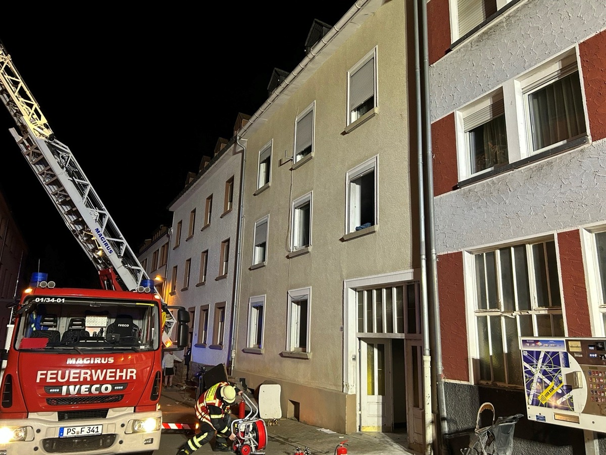 Beim Eintreffen der Einsatzkräfte von Feuerwehr, Rettungsdienst und Polizei waren die Flammen bereits von Ersthelfern mit einem Feuerlöscher gelöscht worden. Die Rauchentwicklung war aber dermaßen stark, dass ein Verlassen des Hauses über das Treppenhaus nicht mehr möglich war. Mit einer Drehleiter rettete die Feuerwehr einige der Hausbewohner aus dem Dachgeschoss. Mindestens zehn Personen wurden leicht verletzt und vorsorglich in einem Krankenhaus behandelt, darunter der stark alkoholisierte Tatverdächtige. Eine Frau und ihr Kind, die aus dem ersten Obergeschoss sprangen, kamen mit leichten Verletzungen davon.