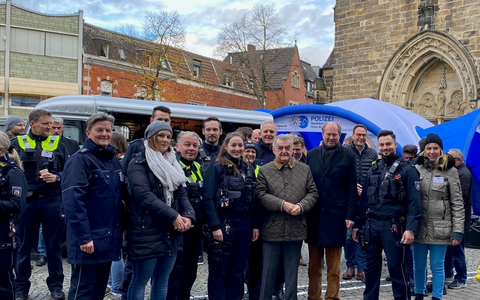 Warendorf - Am Samstag, 4.11.2023 gab es während der Veranstaltung "Coffee with a Cop" tolle Gespräche mit den Bürgerinnen und Bürgern in Ahlen. Polizistinnen und Polizisten sowie der Innenminister Herbert Reul und Landrat Dr. Olaf Gericke stellten sich den Fragen der zufällig vorbeischlendernden, aber auch der gezielt kommenden Bevölkerung. Bei einem Heißgetränk ließ es sich angenehm plaudern und austauschen. "Das Format "Coffee with a Cop" soll Berührungsängste zur Polizei abbauen und ist ein niedrigschwelliges Angebot für die Bürgerinnen und Bürger", so der Behördenleiter Dr. Olaf Gericke. "Des Weiteren werben wir für mehr Respekt für unsere Einsatzkräfte, einschließlich Rettungsdienst und Feuerwehr, die für die Sicherheit der Menschen hier im Kreis sorgen".