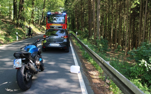 Das erkannte ein nachfolgender Motorradfahrer offenbar aufgrund der Kurvenlage ebenfalls sehr spät, bremste sein Motorrad der Marke Yamaha ab und wich nach rechts aus. Der 29-jährige Leverkusener prallte mit seinem Motorrad auf das Heck des Pkw und wurde zwischen seinem Motorrad und der rechtsseitigen Leitplanke eingeklemmt. Umgehend wurden Feuerwehr, Rettungswagen und Polizei alarmiert und begaben sich zur Unfallstelle. Der Motorradfahrer wurde nach kurzer Behandlung vor Ort mit einem Rettungswagen in ein Krankenhaus gebracht, wo er zur Beobachtung stationär verblieb. Eine Lebensgefahr konnte ausgeschlossen werden.
