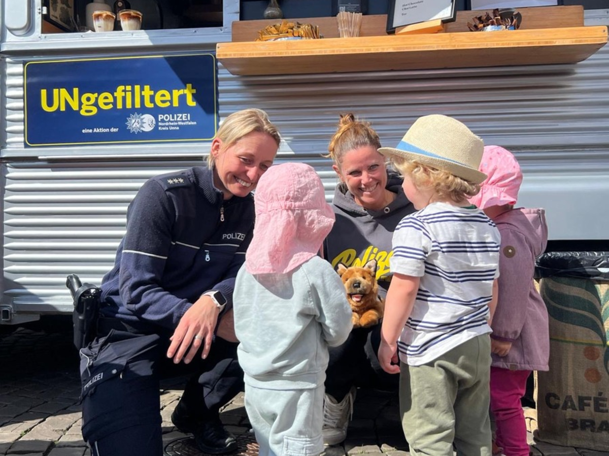 Aber auch wir suchen vermehrt den Kontakt zu den Bürgerinnen und Bürgern, um Sie für die Themen wie Schockanrufe, Enkeltrick, Kriminalitätsbekämpfung und Einbruchssicherheit zu sensibilisieren. Denn wir wollen, dass SIE sicher im Alltag sind. Und das fängt bei den Kleinsten an - bei "UNgefiltert" stehen wir auch Kindern für alle Fragen rund um den Polizeiberuf zur Verfügung.