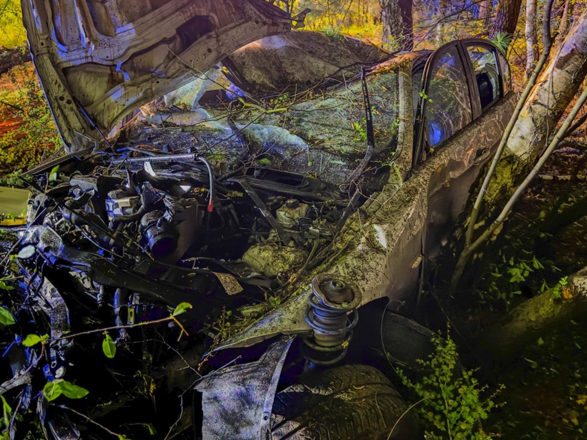 Beim Eintreffen der Einsatzkräfte stellte sich heraus, dass sich die verunfallte Person eigenständig aus dem stark beschädigten Fahrzeug befreien konnte. Mit letzter Kraft gelang es ihr, sich aus dem Wald bis zur Autobahn zu schleppen und dort vorbeifahrende Fahrzeuge auf sich aufmerksam zu machen. Die Feuerwehr leuchtete umgehend die Einsatzstelle aus und suchte den Nahbereich mithilfe einer Wärmebildkamera nach weiteren möglichen Beteiligten ab. Glücklicherweise konnten keine weiteren Personen festgestellt werden. Der Unfallhergang zeigte ein außergewöhnlich hohes Maß an Wucht: Das Fahrzeug war offenbar nahezu hochkant in die Bäume eingeschlagen. Das Dach wurde massiv eingedrückt, sodass es als nahezu unglaublich gilt, dass die Person den Unfall überleben und sich selbst befreien konnte. Während der Rettungsmaßnahmen sperrte die Polizei eine Fahrspur der Autobahn. Die verletzte Person wurde durch den Rettungsdienst vor Ort medizinisch erstversorgt und anschließend in ein Krankenhaus transportiert. Die Ermittlungen zur genauen Unfallursache dauern an.