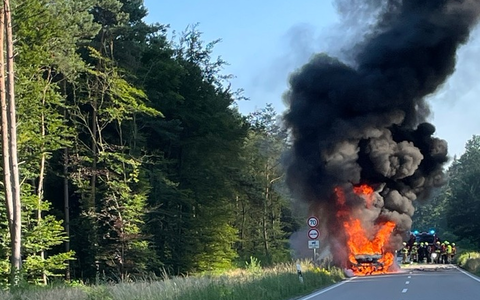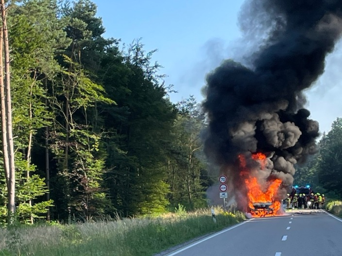 Wörth/ Büchelberg - Am 24.06.2024 kam es um 18:40 Uhr zu einem Vollbrand eines Kleinlastkraftwagens. Nach Zeugenhinweise fing das Fahrzeug während der Fahrt im Motorenbereich an zu brennen. Das Fahrzeug brannte im Verlauf völlig aus, die Bienwald B9 musste für beide Fahrtrichtungen total gesperrt werden. Die beiden Fahrer konnten unverletzt aus dem Fahrzeug gelangen. Die freiwilligen Feuerwehren aus Wörth, der Verbandsgemeinde Hagenbach und aus Frankreich waren mehrere Löschfahrzeuge im Einsatz. Zum Glück war der Kleinlastkraftwagen ohne problematische Ladung. Es mussten umfangreiche Absperrungen und Verkehrslenkungsmaßnahmen durch die Straßenmeisterei erfolgen. Die Bienwald B9 bleibt bis auf weiteres gesperrt. Der Schaden dürfte sich auf mehrere tausend Euro belaufen Grund des Brandes dürfte ein technischer Defekt gewesen sein. Wie lange die Bienwald B9 gesperrt bleibt ist noch unklar.