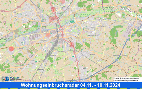 Wohnungseinbruchsradar Hamm für die Woche vom 4. November bis 10. November