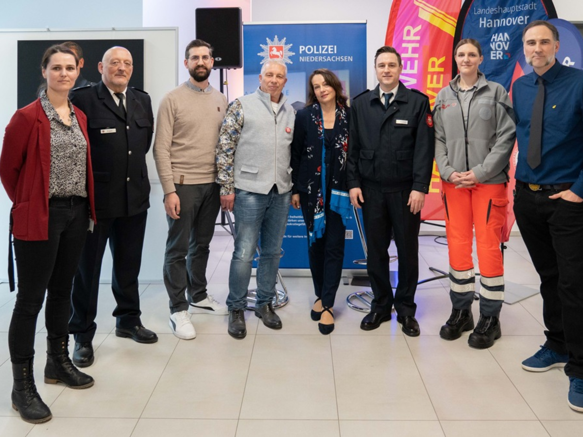 Zahlreiche Vertreterinnen und Vertreter verschiedenster Institutionen wie der Polizei Niedersachsen, der Feuerwehr Hannover, der Johanniter Unfallhilfe und auch der Stadt Hannover waren vor Ort, um die Menschen zu würdigen, die sich tagtäglich in den Dienst der Gesellschaft stellen. Neben der Polizeidirektion Hannover und dem Landeskriminalamt Niedersachsen ist auch die Zentrale Polizeidirektion Niedersachsen Kooperationspartner für die Wanderausstellung.