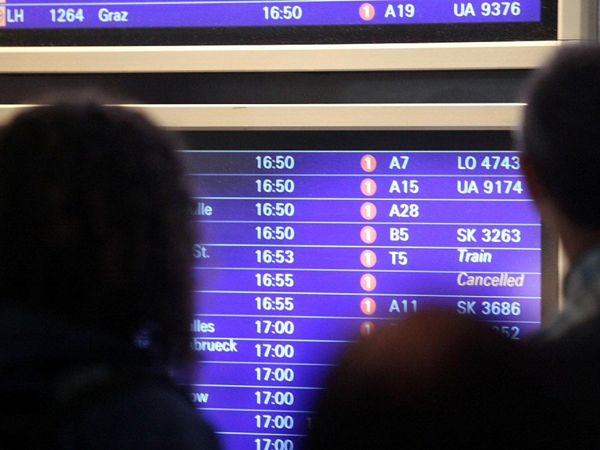 Passagiere vor Informationstafel am Frankfurter Flughafen - Foto: via dts Nachrichtenagentur