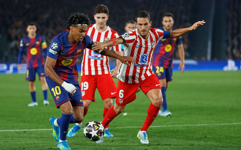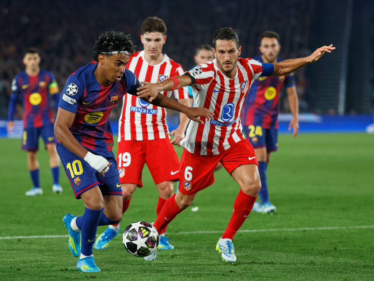 • Lamine Yamal (links) und der FC Barcelona lieferten sich ein hitziges Duell mit Atlético Madrid. - Foto: Joan Monfort/AP/dpa
