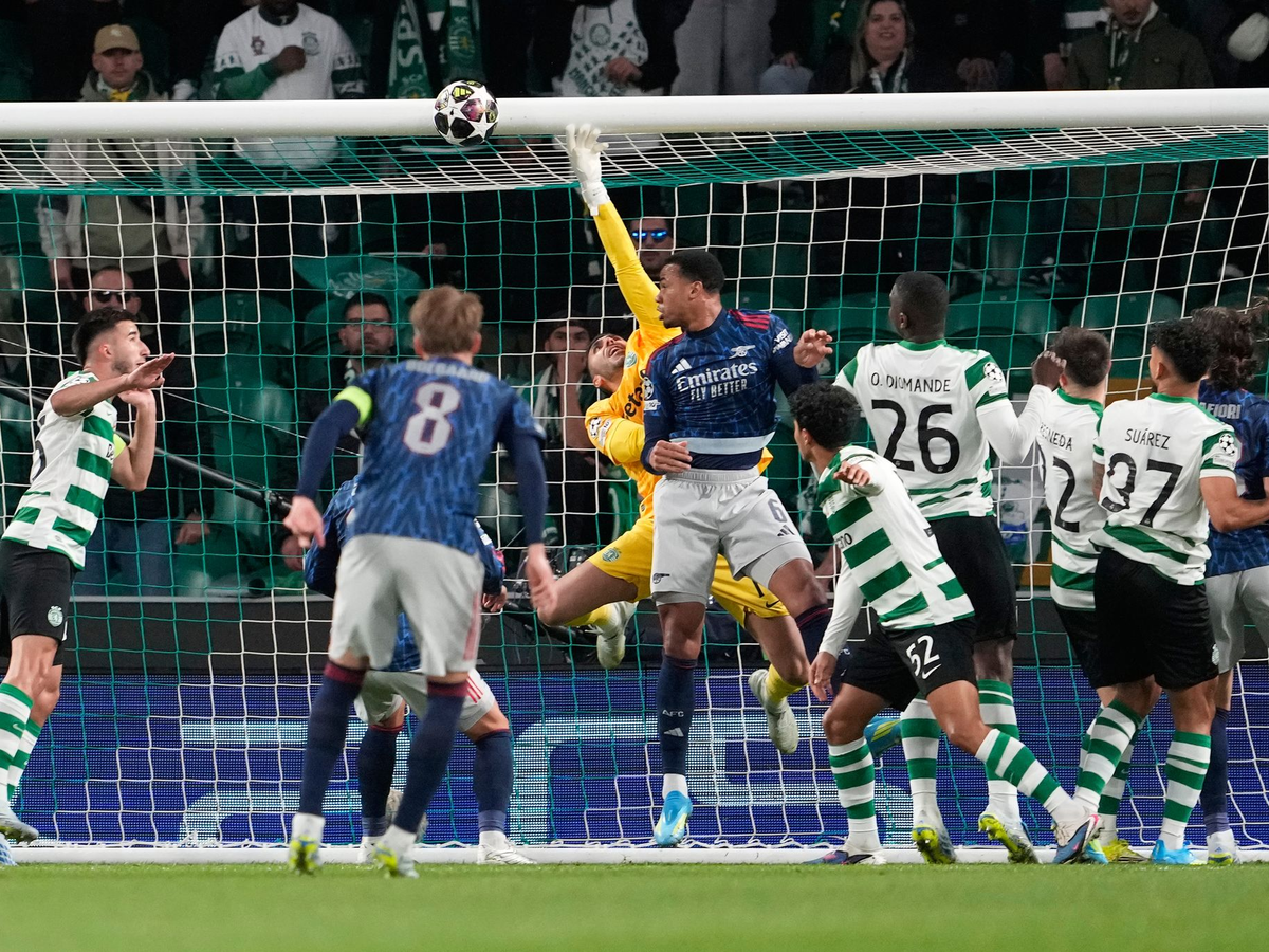 Die GĂ€ste aus England zeigten sich nach knapp einer Viertelstunde erstmals vor dem Sporting-Tor - und das natĂŒrlich ĂŒber Standards. Einen scharf vor das portugiesische Tor gezogenen FreistoĂ von KapitĂ€n Martin Ădegaard klĂ€rte Sporting auf der Linie zum Eckball, den Noni Madueke direkt an die Latte setzte.