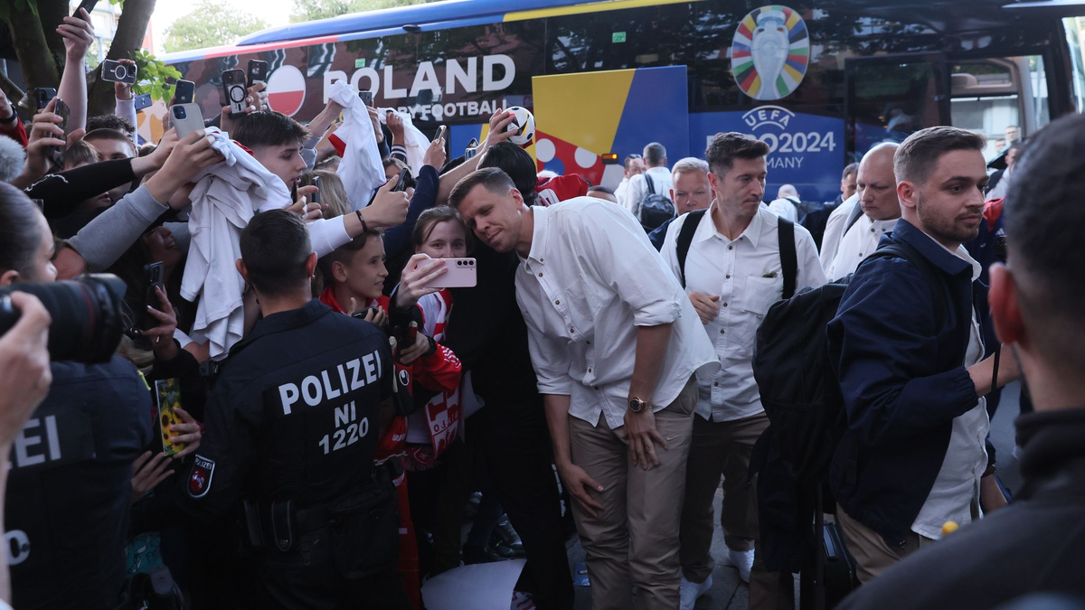 • Bald wieder beim FC Barcelona vereint? Die langjährigen polnischen Nationalspieler Robert Lewandowski (M) und Wojciech Szczesny - hier bei der EM in Deutschland. - Foto: Leszek Szymanski/PAP/dpa