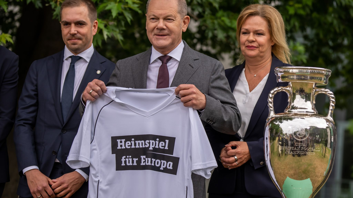 Bundesinnenministerin Nancy Faeser (SDP) kündigte im Kanzlergarten ein «Heimspiel für Europa» an, Scholz bekam im Anschluss an die Reden in Berlin ein weißes T-Shirt mit genau dieser Aufschrift überreicht. «Wir wollen es zu einem Fest für ganz Deutschland machen, den gesellschaftlichen Zusammenhalt stärken. Es werden die nachhaltigsten Europameisterschaften», sagte Faeser.