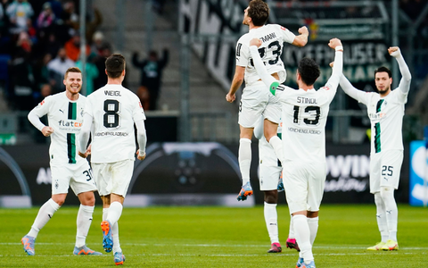 Derweil wahrten die Kraichgauer ihre Chance auf eine Europacup-Teilnahme. Vor 26.078 Zuschauern in Sinsheim hatte der Niederländer Wout Weghorst (36. Minute) die TSG mit seinem siebten Saisontor in Führung gebracht. Der Ex-Hoffenheimer Hack glich nur drei Minuten später aus (39.). Mit einem Schuss in den Winkel gelang dann Grischa Prömel das 2:1 (58.), ehe Ozan Kabak es ihm nachtat (66.). Mit seinem siebten Tor in diesem Jahr verkürzte Hack noch auf 2:3 (78.), ehe der Borussia-Stürmer (90.) erneut ausglich und der eingewechselte Anton Stach in der Nachspielzeit (90.+1) über den Siegtreffer jubelte