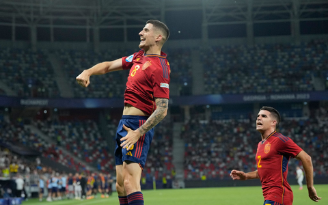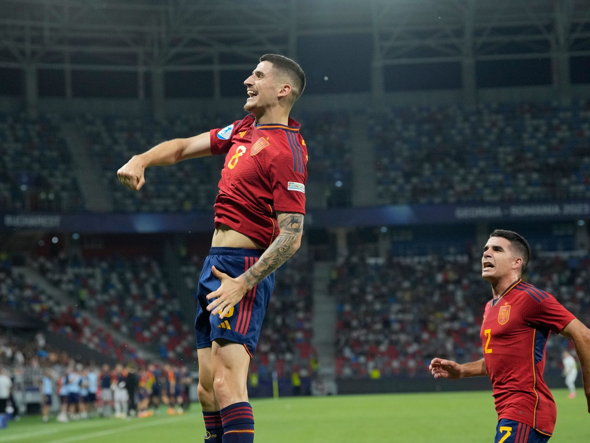 Im zweiten Halbfinale gingen die Ukrainer in Bukarest durch Artem Bondareno in der 13. Minute in FĂŒhrung. Dann aber drehten die Spanier auf. Abel Ruiz (17.), Oihan Sancet (24.), Antonio Blanco (54.), Aimar Oroz (68.) und Sergio Gomez (78.) machten den Endspiel-Einzug klar. Die Spanier waren zuletzt 2019 Europameister, damals gewannen sie das Finale 2:1 gegen die DFB-Junioren.