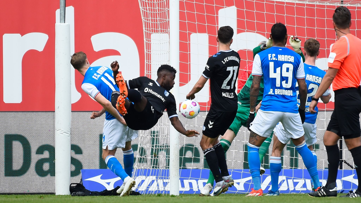 Die Führung der Gäste erzielte Luca Schuler (18.) nach einem Fehlpass von Hansas Mittelfeldspieler John-Patrick Strauß. Daniel Heber (40.) traf per Kopf für die Magdeburger nach einem Freistoß von Baris Atik.