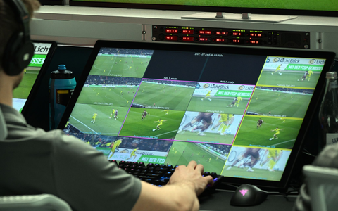 • Ein Videoschiedsrichter hat mehrere Kameraeinstellungen im Blick. (Archivbild) - Foto: Federico Gambarini/dpa