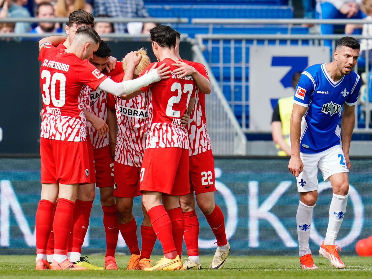 Während die Darmstädter als Tabellenletzter bei noch fünf ausstehenden Bundesliga-Spieltagen zwölf Zähler Rückstand auf den Relegationsrang haben, untermauerte das Team von Trainer Christian Streich seine Europapokal-Ambitionen. Der Sport-Club ist nach dem 29. Spieltag als Tabellenachter punktgleich mit dem siebtplatzierten FC Augsburg.