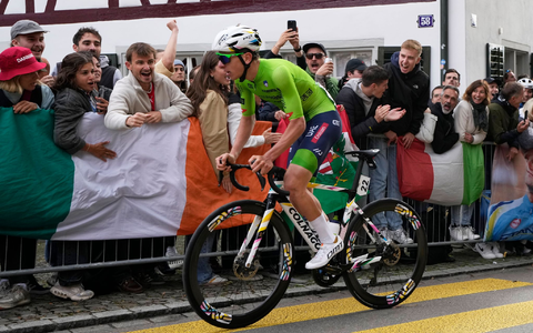 Der Superstar hatte sich eigenes für die WM-Mission ein spezielles Rad bauen lassen. Die Lackierung wurde inspiriert von Pogacars Liebe zu Comics und Pop Art, die diversen Farben wie gelb (Tour de France) und rosa (Giro d'Italia) sollten die größten Erfolge symbolisieren. Gold fehlte - da dürfte nun nachgebessert werden.
