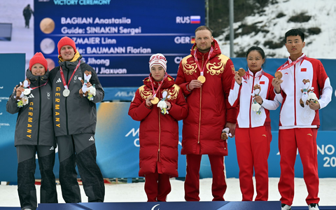 10.03.2026 - 16:40:55 | dpa.deAuf dem Siegerpodest fühlte sich Linn Kazmeier neben der russischen Siegerin Anastasija Bagijan sichtlich unwohl. Die sehbehinderte Langläuferin senkte den Blick und hielt ihr Plüschmaskottchen fest, als die russische Flagge gehisst und die Hymne gespielt wurde. Beim Abschlussfoto auf dem Podium für die Entscheidung im Klassik-Sprint standen Silbermedaillengewinnerin Kazmaier und ihr Guide mit deutlichem Abstand zum russischen Duo und den drittplatzierten Chinesen.