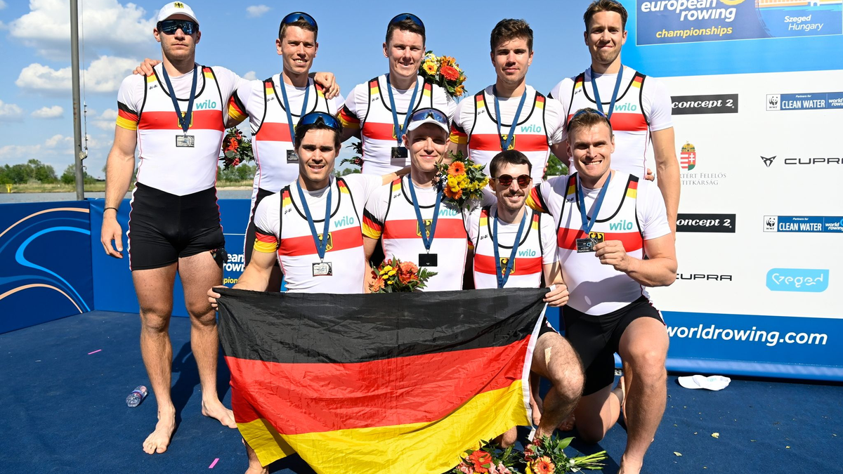 27.04.2024 - 16:50:27 | dpa.deMutiger Start, beherztes Finale - für den Deutschland-Achter ist das lange Warten auf eine Medaille zu Ende. Mit dem zweiten Rang bei der EM in Szeged gelang dem Paradeboot des Deutschen Ruderverbandes (DRV) zum ersten Mal seit Silber 2021 in Tokio wieder der Sprung unter die Top drei bei einer international bedeutsamen Regatta.