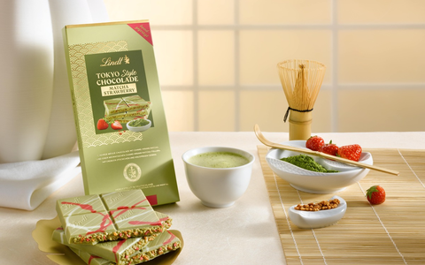 Inspiriert von der Ruhe japanischer Teezeremonien und dem Bedürfnis nach Momenten der Achtsamkeit präsentiert Lindt & Sprüngli seine neueste Kreation: die "Lindt Tokyo Style Chocolade Matcha Strawberry".
