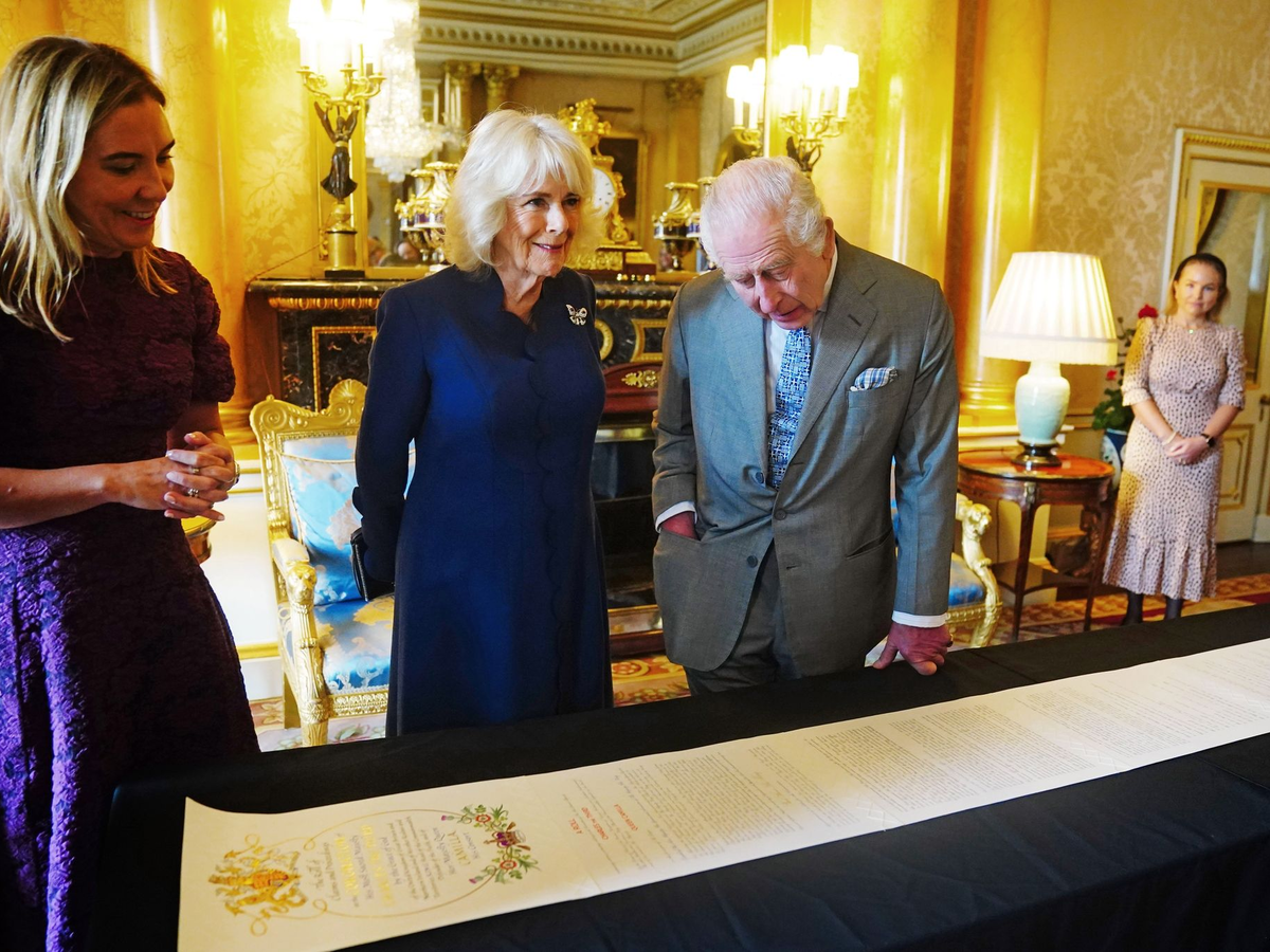 Charles und Camilla bekommen Krönungsrolle überreicht