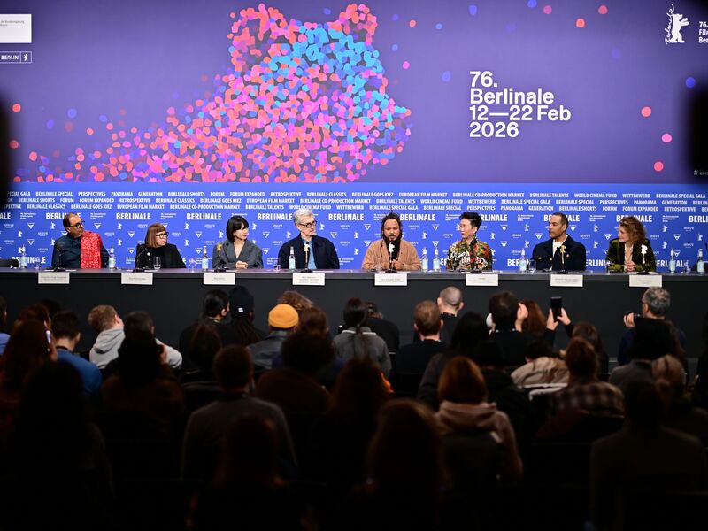 Wim Wenders bei der Jury-Pressekonferenz. - Foto: Sebastian Christoph Gollnow/dpaDie diesjährige Jury im Wettbewerb um den Goldenen Bären. - Foto: Sebastian Christoph Gollnow/dpaWenders fotografierte kurzerhand auch mal selbst. - Foto: Sebastian Christoph Gollnow/dpaDie Regisseurin Shahrbanoo Sadat stellte ihren Film «No Good Men» vor. - Foto: Sebastian Christoph Gollnow/dpa