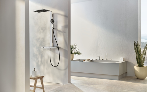 Der letzte Aspekt ist der Erlebniswert. Er beschreibt die Verschiebung des Fokus von reinen Produkten hin zu Erlebnissen, die mit ihnen verbunden sind. Produkte werden nicht mehr nur nach ihrer Funktionalität oder Ästhetik beurteilt, sondern auch danach, welche emotionalen und sinnlichen Erfahrungen sie bieten. "Bewohner:innen schätzen einzigartige und unvergessliche Erlebnisse, die ihr Leben bereichern und bleibende Erinnerungen schaffen, und messen ihnen mehr Bedeutung bei. Das kann viele Formen annehmen: Von Oberflächen, die ein taktiles Gefühl ins Bad bringen bis hin zu klaren, minimalistischen Designs, die eine beruhigende Atmosphäre schaffen", sagt Patrick Speck. Auch Haptik ist hier entscheidend: Das Herzstück der GROHE Rainshower Aqua Pure ist das SmartControl Thermostat, dessen gerändelte, versenkbare Metallknöpfe ausdrucksstarke Formen mit minimalistischer Ästhetik kombinieren. Sie treten erst bei Betätigung subtil hervor. Die Rändelstruktur fügt eine taktile Dimension hinzu und schafft eine multisensorische Interaktion. "Es ist nur eine kleine Funktion, aber sie erhöht das gesamte Duscherlebnis, indem sie mehrere Sinne anspricht", sagt Patrick Speck.Unter Berücksichtigung dieser drei Schlüsselaspekte lässt sich das Badezimmer in einen Ort der Entspannung und Regeneration verwandeln.