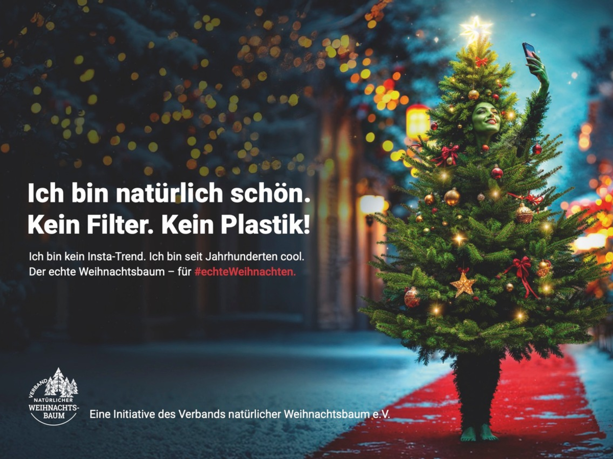 Begleitet wird der Aktionstag von einer aufmerksamkeitsstarken Kampagne rund um die Baumfluencerin "Sassy". Mit ihrem Claim "Ich bin natürlich schön. Kein Filter. Kein Plastik! Ich bin seit Jahrhunderten cool." verkörpert sie die Haltung des echten Weihnachtsbaums: authentisch und selbstbewusst. Auf Plakaten, in Anzeigen, in Social Media und direkt vor Ort transportiert "Sassy" mit Humor die Botschaft: Echte Weihnachtsfreude wächst natürlich und kommt nicht aus der Fabrik - für #echteWeihnachten.