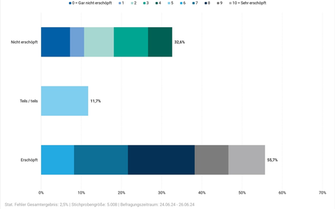 55,7 % der Deutschen sind erschöpft / Erschöpfung nimmt erneut zu / Politische Situation wird zum Problem / Erwerbstätige beklagen sinnlose Arbeit