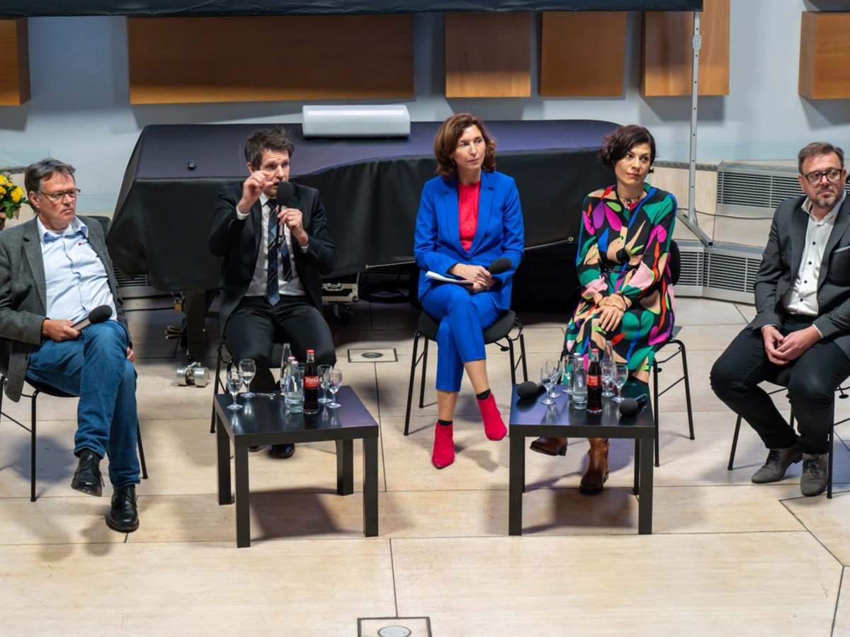 Elena Kountidou, Geschäftsführerin Neue Deutsche Medienmacher*innen e.V., weist in ihrem Vortrag darauf hin, dass die Übertragung von Kulturangeboten für gewinnorientierte Medien weniger interessant ist. Sie betont, dass 3sat als Kultur- und Wissenschaftskanal das Potential besitzt, ein "Wir"-Gefühl innerhalb eines zunehmend diverser werdenden Publikums zu erzeugen: "3sat sollte Geschichten erzählen, die das vielfältige Leben der Gesellschaft widerspiegeln, unabhängig von Herkunft, Religion oder sozialem Hintergrund. So kann 3sat mit seinem Angebot eine Brücke zur Gesellschaft sein und Vertrauen in die öffentlich-rechtlichen Medien schaffen. Gerade jetzt - wichtiger denn je."