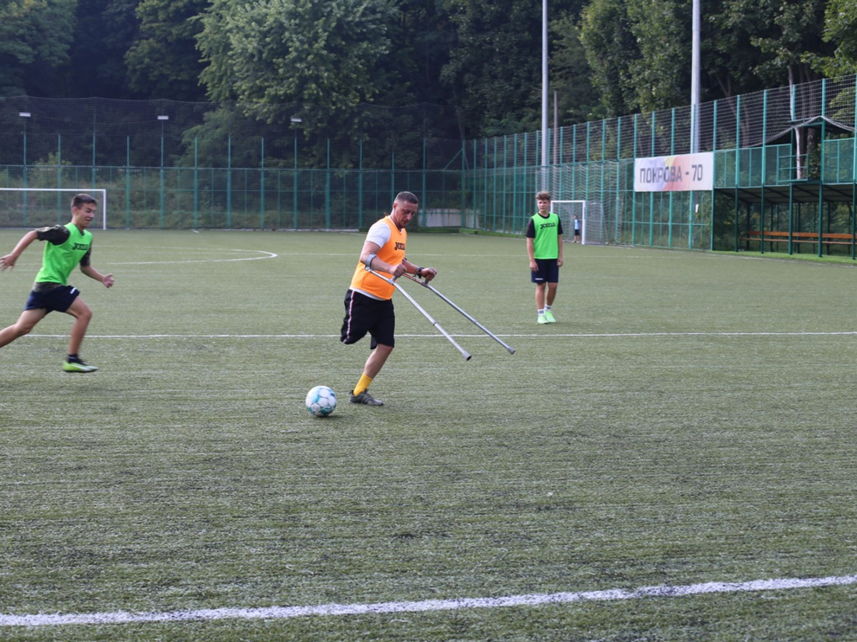 Einer der Spieler ist Denys. Der 38jährige verlor bei der Verteidigung seiner Heimatstadt Mariupol ein Bein. Nach der russischen Gefangenschaft kehrte er zu seiner Familie zurück und kam dann nach Lemberg zur Rehabilitation. Dort begann er sich für Fußball zu interessieren. Im Januar 2024 trat er dann der Amputierten-Fußballmannschaft Pokrova bei.