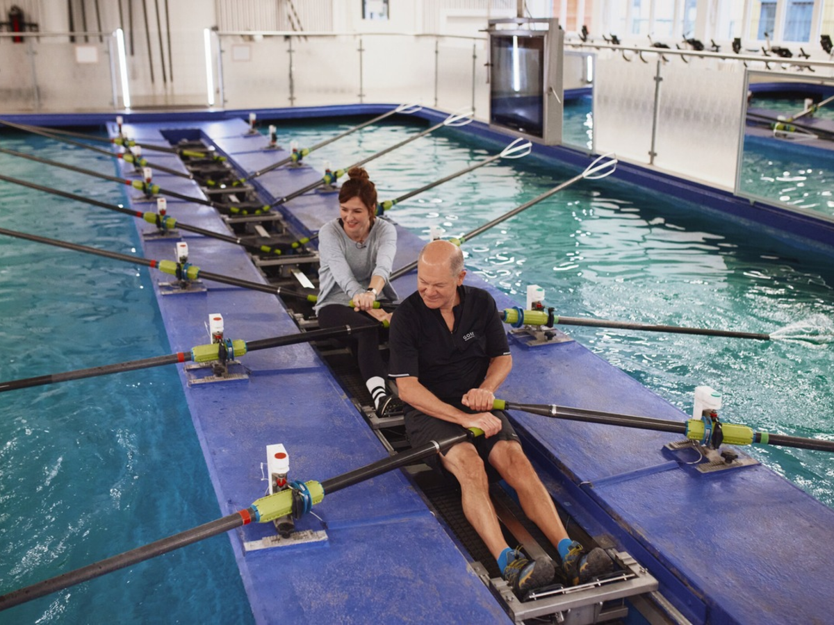 Der Kanzler rudert mit Katrin Bauerfeind. ProSieben zeigt am Dienstag die Doku Olaf Scholz. Countdown im Kanzleramt