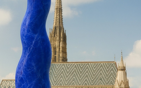 16.12.2025 - 10:06:09 | presseportal.deIm Zentrum des Projekts steht der Entwurf eines zweiten Turms, der dem Stephansdom gegenübergestellt ist. Er ist nicht als Bauvorhaben gedacht, sondern als geistige Setzung. Der Turm ist in einem tiefen Blau konzipiert und als unmögliche Forderung aus Lapislazuli formuliert – einem Material, das seit Jahrhunderten für Transzendenz und geistige Dauer steht. Dass ein solcher Turm nicht realisierbar ist, gehört zur Aussage.