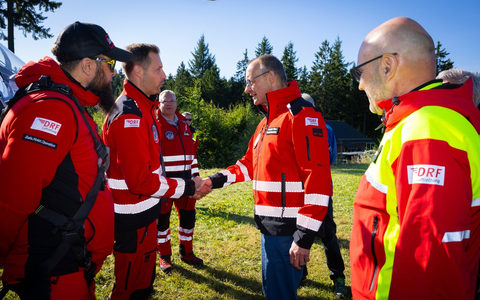 Der Bundeskanzler zeigte sich beeindruckt von der Arbeit der Luftretter und der an der Windenrettung beteiligten Organisationen: "Ich möchte mich herzlich für die Möglichkeit bedanken, hier heute am Windentraining teilzunehmen und so einen eindrucksvollen Einblick in die Leistungsfähigkeit der DRF Luftrettung zu gewinnen. Ich konnte feststellen, dass die Teams hochprofessionell, perfekt abgestimmt und mit hervorragender Ausrüstung arbeiten. Auch im Bundeskabinett ist das Thema Notfallhilfe aktuell präsent: Letzte Woche wurde der Beschluss gefasst, einen Nationalen Sicherheitsrat einzusetzen. Er wird sich mit allen Fragen des Bevölkerungsschutzes befassen und ermöglicht eine umfassende Vorbereitung, Abstimmung, Kommunikation und Durchführung aller nötigen Maßnahmen im Katastrophenfall. Auch die Länder und alle betroffenen Hilfsorganisationen werden hierbei einbezogen werden. Mein Dank geht an dieser Stelle nochmals an alle diejenigen - und hier möchte ich insbesondere die vielen ehrenamtlich Tätigen hervorheben - die dafür sorgen, dass wir hier in Deutschland Standards setzen in der Notfallrettung."