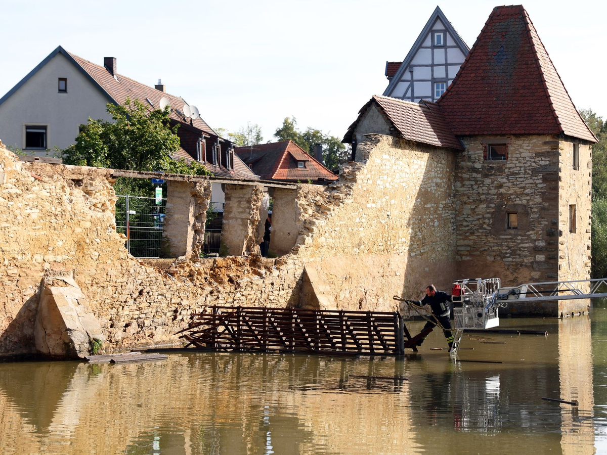 In Folge der Unwetter mit Starkregen in Franken ist ein Teil der historischen Stadtmauer in Weißenburg eingestürzt. Die Mauer sei auf einer Länge von rund 25 Metern in sich zusammengefallen, sagte ein Sprecher der Stadt am Freitag. Verletzt wurde niemand.