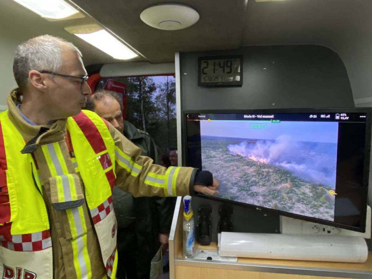 Unter Leitung der Städteregion Aachen versuchten derzeit rund 200 deutsche Rettungskräfte eine Ausdehnung des Brandes von der Gras- und Moorlandschaft auf den sogenannten Hochwald zu vermeiden. «Unsere Aufgabe besteht darin, im Bereich zwischen dem Grasfeuer und dem Baumbestand, der größtenteils aus Fichten besteht, eine Brandschneise zu sichern», sagte Kreisbrandmeister Thomas Sprank. «Uns kommt dabei ein geteerter Weg zugute. Entlang dieses Weges befeuchten wir massiv den Boden, um dadurch den Brandfortlauf zu verhindern.»