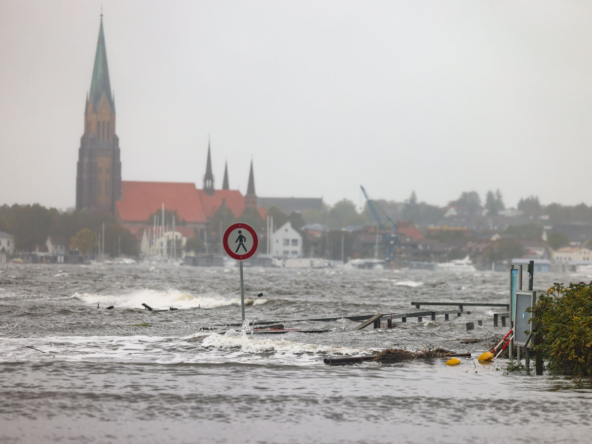 20.10.2023 - 22:19:48 | dpa.deEin Todesopfer, überflutete Straßen und Hafenanlagen, umgestürzte Bäume - die Küste Schleswig-Holsteins ist am Freitagabend von einer schweren Sturmflut getroffen worden. In viele Städten kam es zu Behinderungen wegen gesperrter Straßen. Der Ostwind trieb das Wasser mit Orkanböen gegen Strände und Steilküsten. In Flensburg wurde ein Jahrhundertwasserstand erreicht.