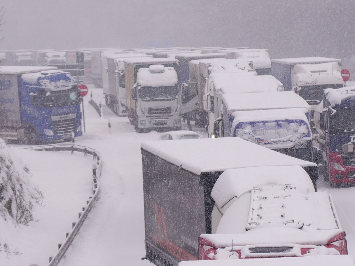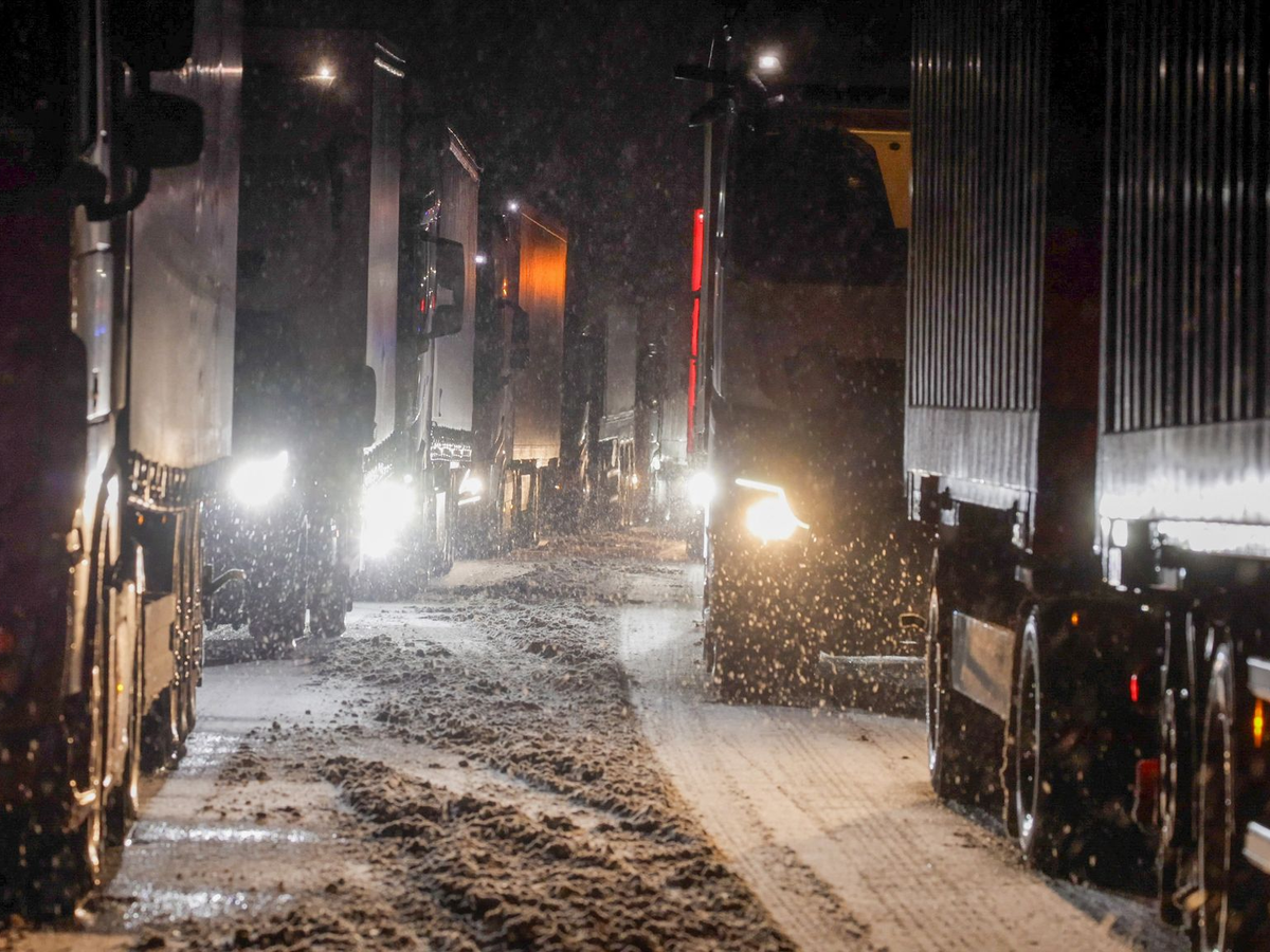 Noch am Morgen bezeichnete ein Polizeisprecher die Lage als «sehr problematisch». Auf allen Autobahnen habe es kilometerlange Staus gegeben. Bereits am Mittwochabend ging nichts mehr: Mehrere Lkw blockierten auf vereisten Straßen die Fahrstreifen. Auf Bildern war zu sehen, wie Lastwagen auf verschneiten Fahrbahnen standen. Zu sehen war auch, wie Helfer auf Quads im Stau unterwegs waren, um den festsitzenden Menschen in den Fahrzeugen zu helfen.