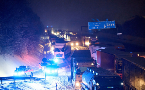 Lange Staus auf Autobahnen wegen Schnee und Glatteis