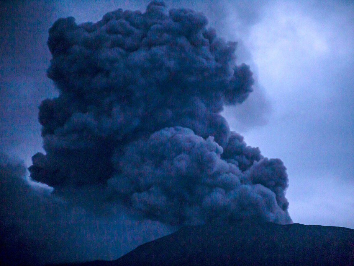 Der knapp 3000 Meter hohe Vulkan war am frühen Sonntagnachmittag ausgebrochen und hatte eine rund drei Kilometer hohe Aschewolke in den Himmel gespuckt. Die Behörden richteten danach umgehend eine Sperrzone von drei Kilometern rund um den Krater ein. In verschiedenen Bezirken rund um den Vulkan ging ein Ascheregen nieder. Auch der Himmel verdunkelte sich zeitweise. Die Bewohner wurden aufgefordert, in ihren Häusern zu bleiben.