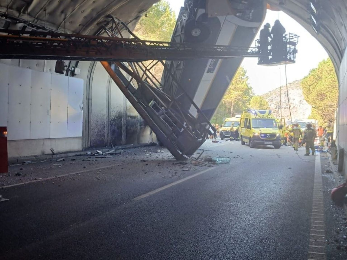 An Bord waren Beschäftigte eines Textilunternehmens. Als ein möglicher Grund für das Unglück wurde ein geplatzter Reifen genannt, da kurz vor dem Unfall ein lauter Knall zu hören gewesen sei, schrieb die Zeitung «La Vanguardia». Der Bus krachte zum Glück nicht frontal gegen den Tunneleingang, sondern wurde durch den ovalförmigen Eingangsbogen in die Höhe geschleudert.