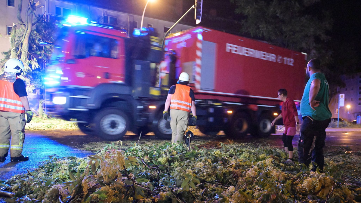 Das Gewitter zog nach ersten Angaben eine Schneise durch die Stadt. Auch DĂ€cher wurden abgedeckt. Die EinsĂ€tze und AufrĂ€umarbeiten wĂŒrden noch bis weit in den Mittwoch hinein andauern, zahlreiche StraĂen wĂŒrden zunĂ€chst gesperrt bleiben, hieĂ es.