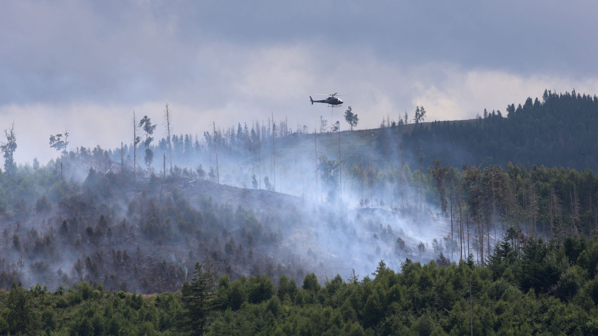 Rauchwolken bei Goslar: Hier wütet seit Sonntag ein Waldbrand. - Foto: Matthias Bein/dpa