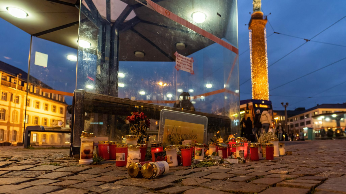 Kerzen und Blumen im November 2023 in Darmstadt zur Erinnerung an einen Obdachlosen, der dort wenige Tage zuvor getötet worden war. - Foto: Marc Wickel/dpa