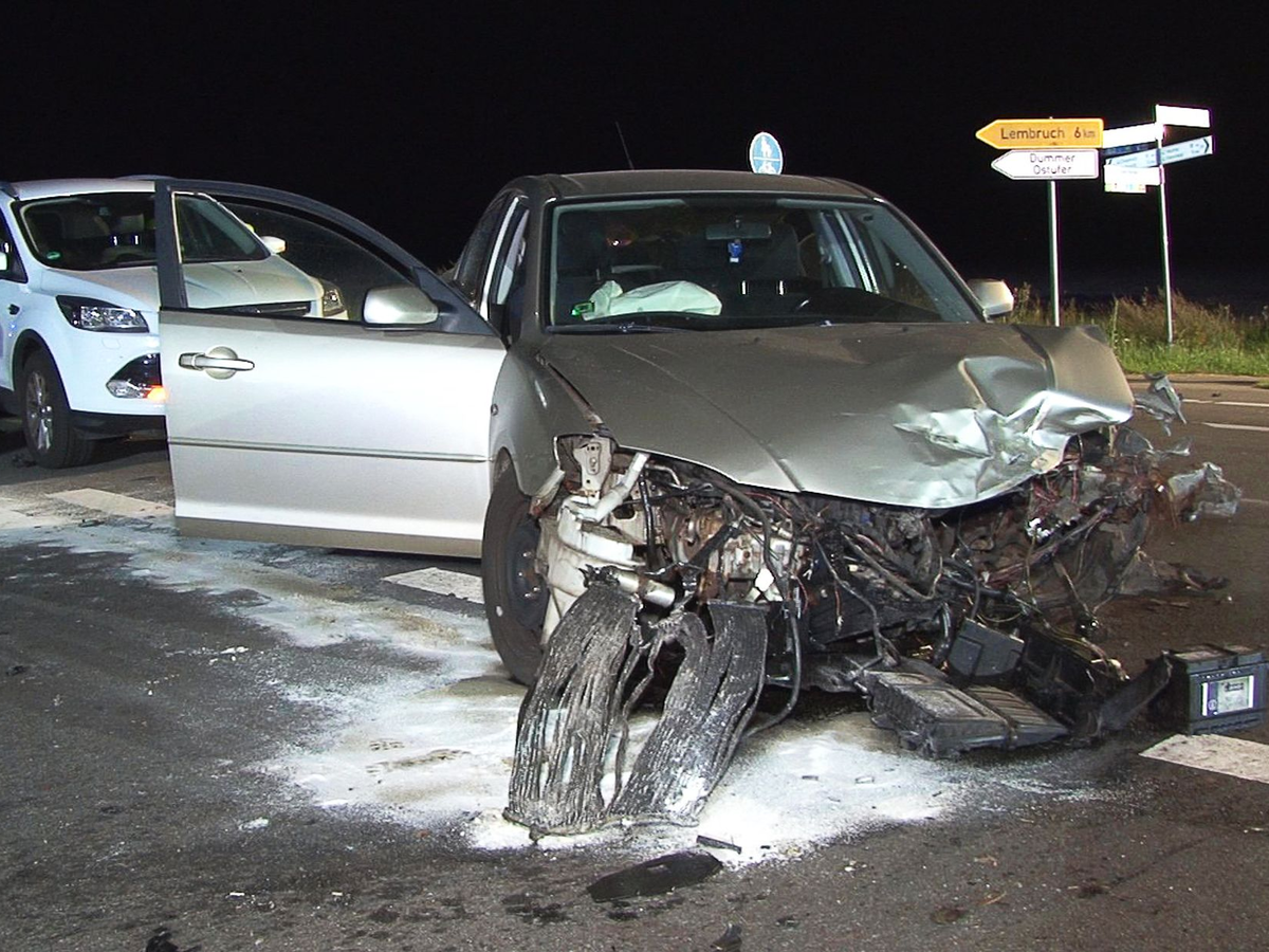 Bei einem Unfall nördlich von Osnabrück sind zehn Menschen verletzt worden, eine Person davon schwer. Ein 26-jähriger Autofahrer wollte am Samstagabend in Damme nach links abbiegen und übersah dabei das Auto eines 20-jährigen Fahrers im Gegenverkehr, wie die Polizei mitteilte. Die beiden Wagen stießen frontal zusammen.