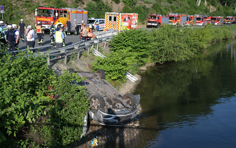 Nach dem Unfall am Freitagabend lag der Wagen auf dem Dach, teilweise auf der Böschung und teilweise im Fluss. Die Ersthelfer hĂ€tten ĂŒber den Kofferraum die beiden lebensgefĂ€hrlich verletzten Frauen geborgen und sofort mit WiederbelebungsmaĂnahmen begonnen, bevor die RettungskrĂ€fte kurz danach eintrafen, teilte die Polizei mit.