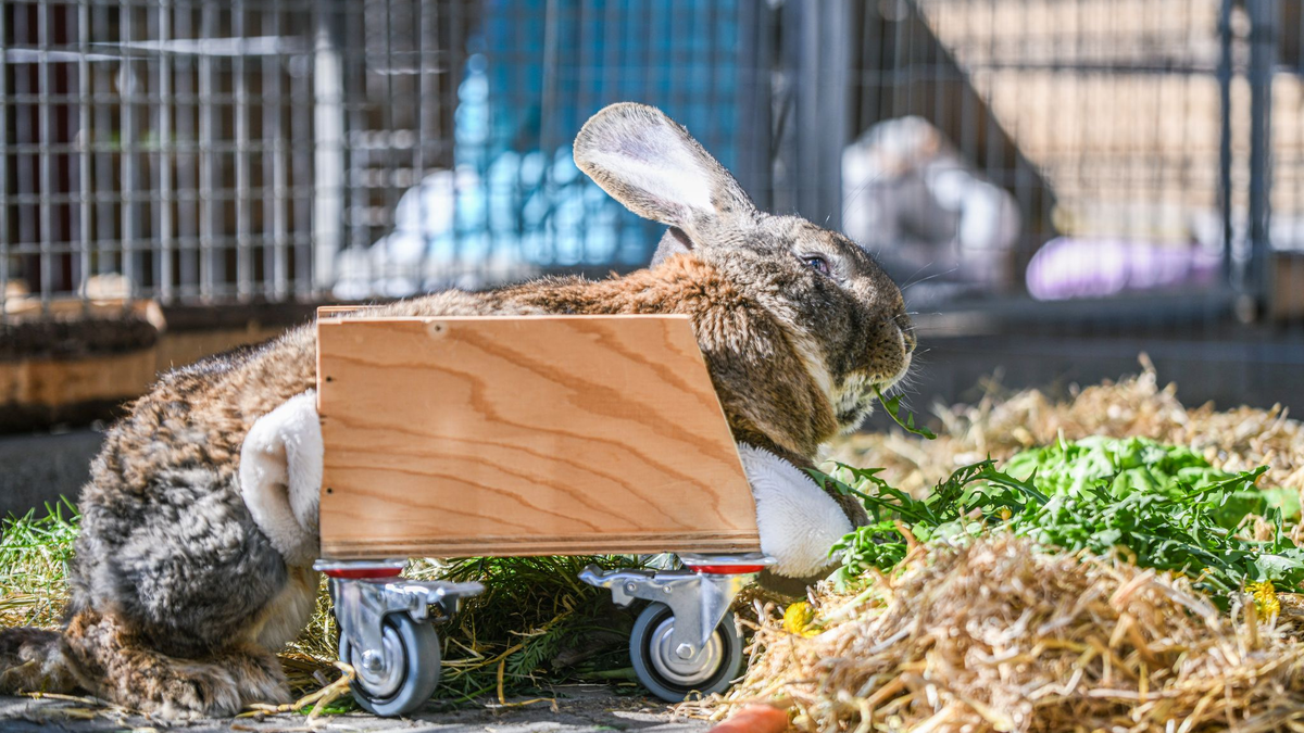 16.04.2025 - 04:00:40 | dpa.deHot Wheels ist der Name des Riesenkaninchens - und der ist Programm. Denn das völlig hilflos auf einem Feld gefundene Tier kann dank eines selbstgebauten Rollators nun wieder fast selbstständig durchs Leben hoppeln. Denn Hot Wheels - auf Deutsch Heiße Räder - ist teilweise gelähmt.