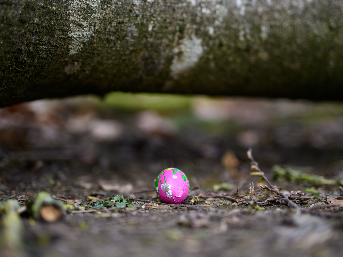 Rund um den umgestĂŒrzten Baum in der Gemeinde Mittelangeln sĂŒdöstlich von Flensburg liegen am Sonntagabend zerdrĂŒckte Schoko-Ostereier, unter dem Stamm klemmte ein kleines Plastikrad, womöglich von einem Kinderwagen.