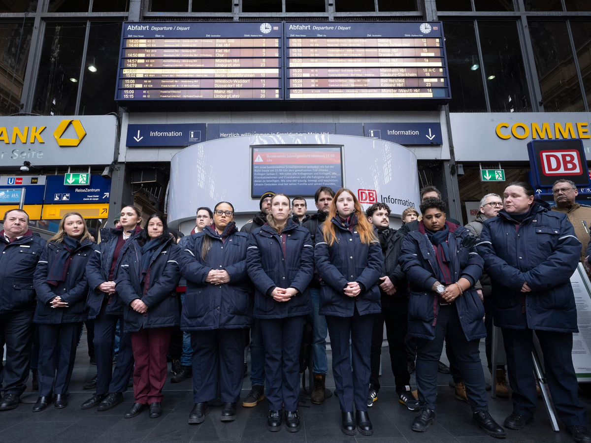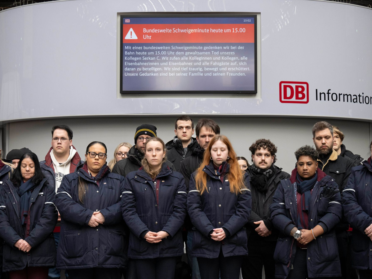 Unter anderem am Hauptbahnhof in Frankfurt verharrten Hunderte Bahnbedienstete mehrere Minuten lang schweigend in Gedenken an den getöteten Kollegen. Auch in Zügen wurde Passagiere um 15 Uhr aufgerufen, sich an der Gedenkminute zu beteiligen.